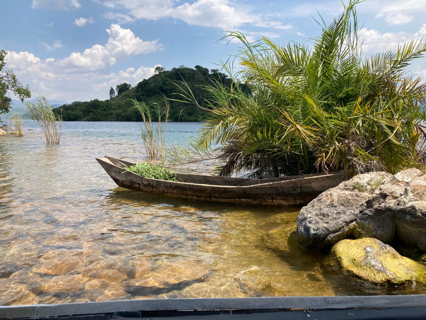 Wir setzten unsere Reise gen Süden fort und legten noch einen Zwischenstopp in Nyanza, Hauptstadt des ehemaligen Königreichs, ein. Für den Nyungwe-Regenwald mussten wir einerseits noch einen Schnelltest machen (für den Primaten-Trail hätten wir tatsächlich einen PCR-Test benötigt, aber Carl und Martha sind noch zu jung dafür), andererseits gab es hier eine Nachbildung des ehemaligen Königspalastes sowie die heiligen Kühe (Inyambo) zu besichtigen. Die Geschichte Ruandas ist für einen kurzen Zeitraum eng mit der deutschen Geschichte verbunden und es lohnt eine Auseinandersetzung mit derselben. Im Kandt-Haus in Kigali kann man beeindruckende Fotografien aus der Zeit um 1900 sehen, oftmals einzige Zeugnisse der Vergangenheit. Der Genozid ist dagegen kaum in Worte zu fassen. Das begleitet uns auch auf unserer Reise, denn im ganzen Land gibt es Genocide Memorials zu besuchen, die an die unfassbaren Gräueltaten erinnern. Das Königreich Ruanda war früher viel größer als heute (wie in Europa gab es auch hier über Jahrhunderte Gebietskämpfe). Im Zuge einer Einigung zwischen den Deutschen, Briten und den Belgiern entstanden die heutigen Grenzen Ruandas. Der frühere König Musinga soll 2,19 m groß gewesen sein, ein stattliche Gestalt. Nach einem Ausflug in die Geschichte setzten wir unsere Reise Richtung Regenwald und Teeplantagen fort. Unsere nächste Lodge lag auf 2400m Höhe, ideale Bedingungen für Black and Green Tea made in Rwanda. Die Ecolodge liegt am Eingang des Regenwaldes vor einem beeindruckenden Bergpanorama und Tee so weit das Auge reicht. Maarten war mit seinem Sohn aus Holland für einen Kurztrip nach Ruanda gekommen. Die Sprachverwandtschaft sorgte für regen Austausch. Am nächsten Morgen hatten wir uns mit Odile zu einer Wanderung durch die Teeplantagen verabredet. Wir in knöchelhohen Wanderschuhen, Odile in Mokassins. Sie erklärte uns die Ursprünge des Teeanbaus, der heute eine wichtige Einnahmequelle Ruandas darstellt. Nicht zuletzt ist er Heilmittel für alle möglichen Beschwerden. Der beschwerlichen Gang durch die Steilhänge wurde belohnt mit fantastischen Ausblicken. Nachmittags gönnten wir uns eine Auszeit und beobachteten die Ankunft einer Gruppe Omanis, die ihre Zelte aufbauten. Sie hatten halb Afrika mit dem Auto bereist und die Flaggen der durchquerten Länder demonstrativ auf den Wagen geklebt. Das klang echt verrückt. Abends hatte uns Eric seine selbstgemachte Tomatensoße im Restaurant versprochen und man merkte seine italienischen Wurzeln. Wir gingen zeitig ins Bett, denn am nächsten Tag wollten wir früh aufbrechen. Der Regenwald sah schon von der Ferne undurchdringlich aus. Nyungwe soll einer der ältesten Wälder der Erde sein. Durch den Wald führt eine asphaltierte Straße, was die Durchquerung von Ost nach West zum Lake Kivu heute einfacher macht. Wir hatten den Igishigishigi-Trail mit einem Canopy-Walk als Ziel auserkoren. Die 2 km-Runde sollte auch für Carl und Martha machbar sein. Patrick und Noella waren unsere Guides und so hofften wir, doch ein paar Affen zu sehen. Riechen konnte ich sie bereits. Der schmale Pfad war gut zu laufen und ging stetig abwärts. Das würden wir auch alles wieder hochlaufen müssen. Die eigentliche Herausforderung, jedenfalls für mich, war die Hängebrücke, die einen ungehinderten Blick in den Regenwald eröffnete. Es war eine ganz schön wacklige Angelegenheit. Glaubte ich anfangs noch Carl und Martha überreden zu müssen, wurde ich schnell eines besseren belehrt. Ich drehte nach dem ersten Drittel um und entschied mich für den Landweg. Ich versprach Noella, es beim nächsten Mal auf jeden Fall zu versuchen. Wir haben ja auch ein paar Jahre Zeit. Die Vegetation war üppig, der Aufstieg machbar und am Ende sollten wir tatsächlich noch ein paar Affen beobachten können. Den Schimpansen-Trail würden wir sicherlich das nächste Mal machen. Wir setzten unsere Fahrt fort und erreichten den Lake Kivu, die westliche Grenze Ruandas. Ein See, der riesige Gasvorkommen enthält, die heute zur Stromerzeugung genutzt werden. Baden wird aber wegen Bilharziose-Gefahr nicht empfohlen. Das ist wirklich bedauerlich, lädt doch der See gerade dazu ein. Vielleicht sollte man dies erneut erforschen, denn der Kontakt mit dem Wasser lässt sich praktisch auch gar nicht vermeiden. Auch Patrick, unser Bootsguide, sagte, dass die Entwässerung menschlicher Fäkalien in den See verboten sei und das Risiko einer Ansteckung nicht bestehe. Er gehe jedenfalls jeden Tag schwimmen. Auf der gegenüberliegenden Seeseite konnte man die Bergkette der Demokratischen Republik Kongo sehen. Die Grenze beider Staaten verläuft direkt durch den See. Es ist eine atemberaubend schöne und scheinbar unberührte Natur. Keine Speedboote, sondern Fischer, die durch ihre Gesänge die Gleichmäßigkeit des Paddeleinsatzes beschwören. Sie laufen abends aus und fangen Sardinen, die am nächsten Morgen in der Sonne getrocknet werden. Patrick hatte stattdessen ein Motorboot und brachte uns zu einigen vorgelagerten Inseln (Monkey-Island, Farmers-Island, Paradise-Island). Einige baulichen Überreste zeugten von einer früheren Besiedlung durch Mönche. Heute gibt es nur Silver-Monkeys, die offensichtlich an Menschen gewöhnt sofort zum Ufer kommen, wohlweislich, dass Patrick immer etwas dabei hat. Ansonsten gibt es Mango-, Zitrus-, Avocado-, Macadamiabäume, die wirklich schmackhaft sind. Vom Boot aus hatten wir einige Kühe auf den Inseln gesehen. Auf die Frage, wie diese dorthin gebracht würden, erklärte Patrick, dass sie schwimmen würden. Ich hätte es nicht geglaubt, wenn wir es nicht mit eigenen Augen gesehen hätten. Wie es der Zufall wollte, kam der Bauer mit seinem Einbaum angepaddelt und wir konnten zusehen, wie die Kühe von einer Insel auf die andere schwammen. Natur kann so einfach sein. Wir genossen das mediterrane Flair am See und belohnten uns am Abend mit einem Essen in der Cormoran-Lodge. Die Zeit verging wie im Flug und so hieß