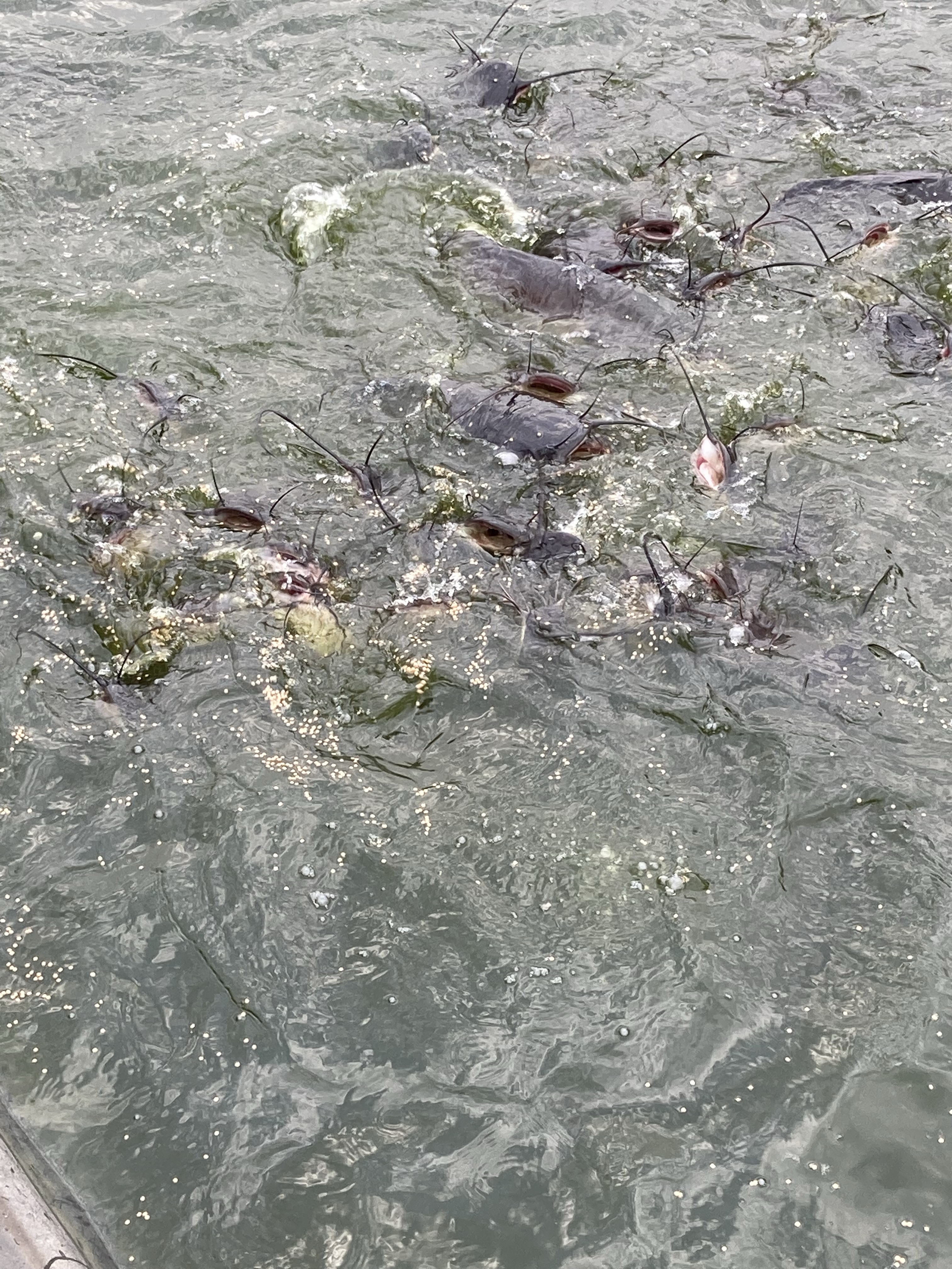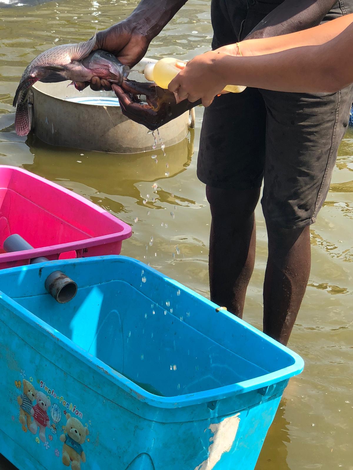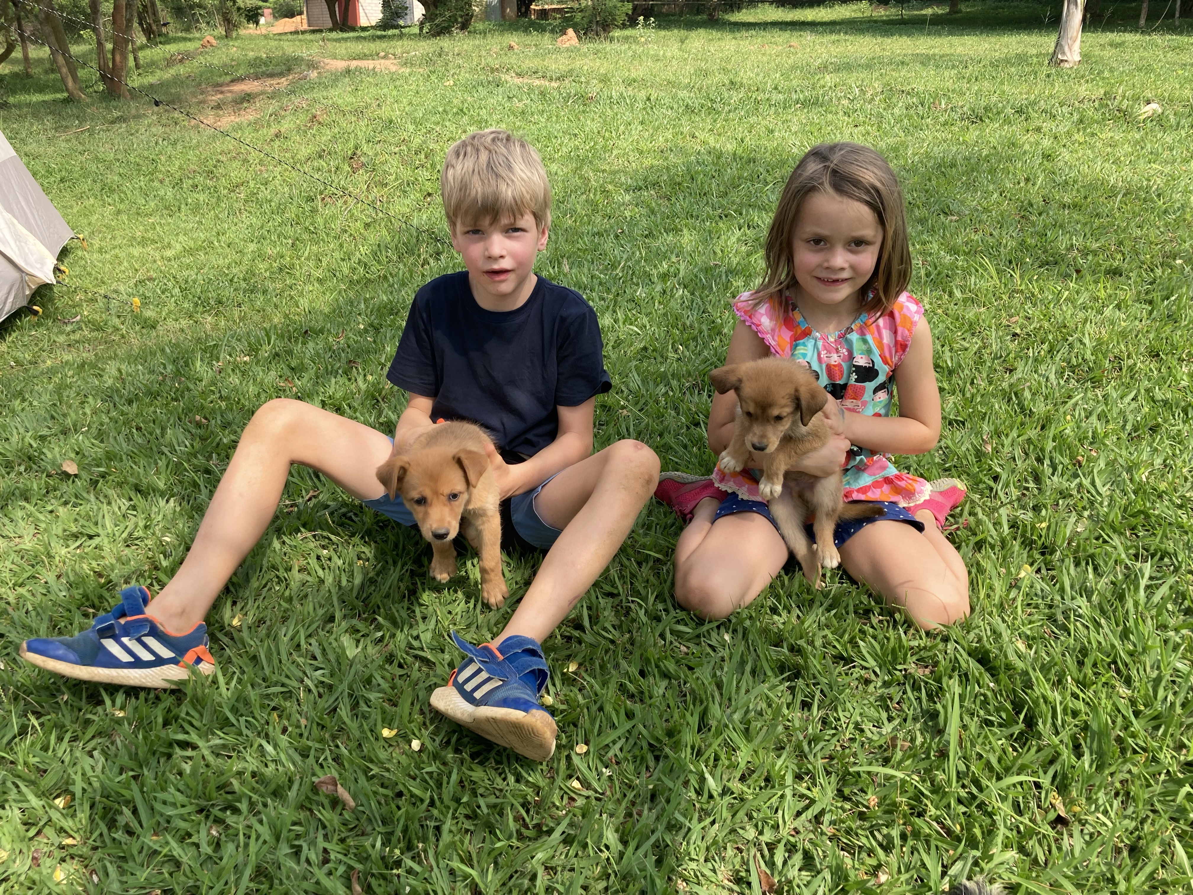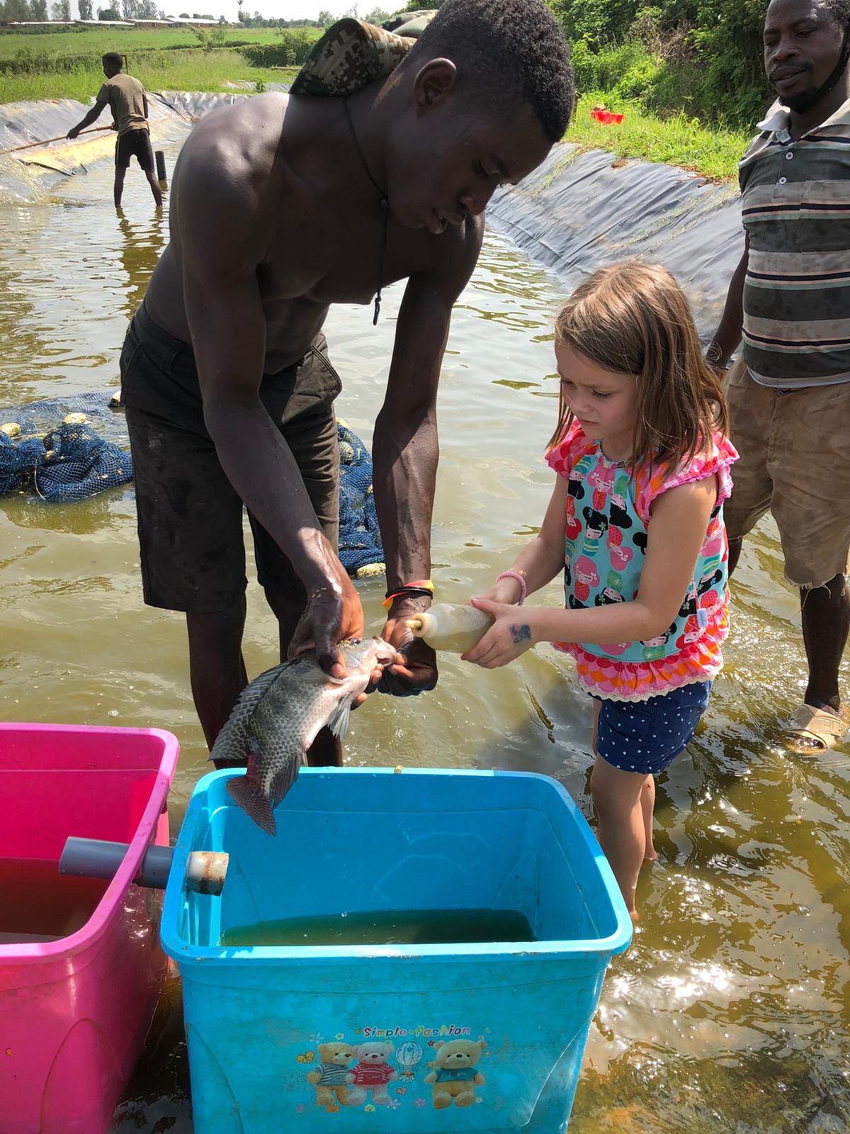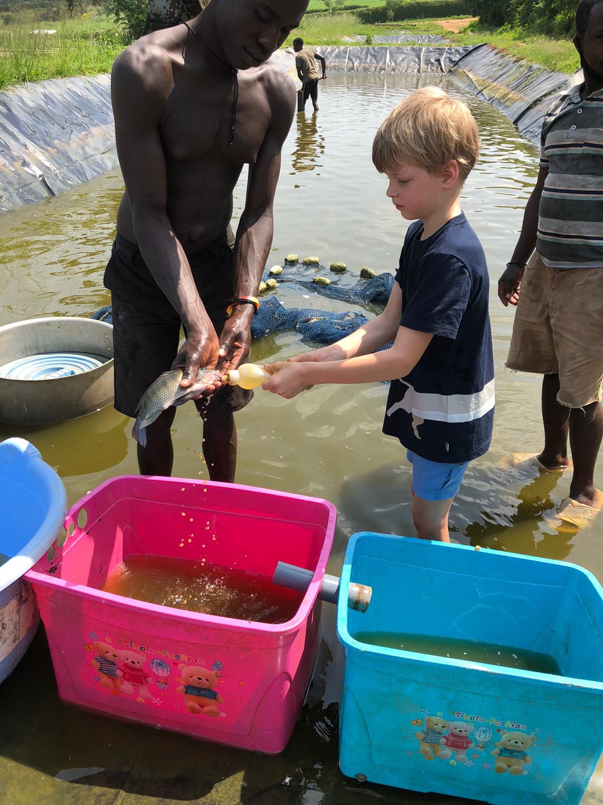 In Berlin haben wir an den Wochenenden auch meistens etwas unternommen, um einfach der beengten Stadtwohnung ein wenig zu entfliehen. In Kigali ist das eigentlich nicht unbedingt zwingend. „Haus und Hof“ bieten ausreichend Abwechslung und Betätigungsfelder. Letztes Wochenende hatten ein paar befreundete Familien die Idee, zu einem Camping-Wochenende auf die Lakeside-Fishfarm im Süden nahe der burundischen Grenze zu fahren. Unser letztes Camping-Abenteuer liegt schon eine Weile zurück und ich war erstaunt, dass Doreen sofort zusagte. Meine letzten Erinnerungen waren nur schmerzender Rücken, kaum Schlaf und zu wenig Platz für vier Leute in unserem 3-Mann-Frau-Zelt. Ruben sagte, dass man aber auch ein weiteres Zelt vor Ort mieten könnte. Ich wollte aber unbedingt mal wieder unser Zelt aufbauen, so dass sich vielleicht das drohende Platzproblem nicht stellen würde. Die Lakeside-Fishfarm liegt 1,5 Stunden Fahrzeit südlich von Kigali und wird von Roger (ein pensionierter Brite) und seiner ruandischen Frau Faith betrieben. Das 14 Hektar große Areal wird nicht nur zur Fischzucht von Tilapia und Catfish genutzt, sondern beheimatet auch Ziegen, Schafe, Schweine, Hunde, Hasen… Ein wahres Kinderparadies, also. Faith erzählte abends am Feuer vom schwierigen Start. Das Land war quasi Urwald und überall waren Schlangen. Der Verkäufer sei wohl irgendwann wiedergekommen, weil er meinte, dass die Bäume nicht mitverkauft worden seien und er nunmehr das Holz fällen würde. Ich weiß nicht, wie das ruandische Recht ist, aber es klang seltsam. Faith erzählte auch, dass die umliegende Bevölkerung dem Kauf ebenfalls zustimmen musste. Als diese vom Projekt erfuhren, standen sie Schlange und baten um eine Arbeitsmöglichkeit. Faith ist eigentlich Lehrerin, deren Familie nach Uganda flüchten musste. Dort hat sie ihre Ausbildung durchlaufen und will heute ihrer eigentlichen Heimat etwas zurückgeben. Da Bildung das wichtigste Gut ist, entschlossen sie sich, auch einen Schule zu bauen, die heute mehr als 200 Kindern das Lernen ermöglicht. Dieser Tatendrang ist irgendwie ansteckend, wenn man den Menschen hier zuhört. Während wir unsere Gespräche vertieften, genossen die Kinder die Freiheit und spielten ausgelassen. Alle gehen in die gleiche Schule und wohnen auch nur eine Parallelstraße entfernt. Daraus hat sich eine Freundschaft entwickelt, die sich auch auf die Eltern übertragen hat. Abends gab es BBQ unterm Sternenhimmel. Der gewohnte Rhythmus hatte hier einmal Pause. Die Kinder würden irgendwann sowieso von allein müde werden. Doreen hatte sich entschlossen, mit Carl und Martha im großen Zelt zu schlafen, ich hatte mein Nachtlager unmittelbar daneben aufgeschlagen. Es war den ganzen Tag über 30 Grad und irgendwann fielen alle nur noch müde ins „Bett“. Ich genoss noch ein wenig die Ruhe am Feuer. Am nächsten Tag sollten wir nämlich eine Führung durch die Fishfarm bekommen, mit einer besonderen Überraschung. Emmanuel erklärte uns die Arbeit in und an den Bassins. Die Kinder durften die Fische füttern und dann war es endlich so weit – Fische melken. Ich konnte mir gar nichts darunter vorstellen. Das Wasser in den Bassins wird regelmäßig abgelassen und ausgetauscht. Das ist der Moment, wenn den weiblichen Tilapia-Fischen die Fischeier aus dem Maul gespült werden. Danach werden sie wieder ausgesetzt. Die Fischeier werden dann zur weiteren Aufzucht verwendet. Eigentlich sollten die Kinder nur zuschauen, aber irgendwann wollten sie alle selbst Hand anlegen. Es gab kein Halten mehr. Das Wasser war mindestens 30 Grad warm und auf der schwarzen Folie konnte man leicht ins Rutschen geraten. Aber sie machten es super, keinerlei Berührungsängste. Ich fand es faszinierend, dass die Weibchen quasi ihren Nachwuchs im Mund herumschleppten. Es waren unzählige kleine Eier und manchmal auch schon kleine Fische. Der Tilapia wird als Frischfisch hauptsächlich nach Kigali verkauft und schmeckt durchaus lecker. Westliche Touristen wollen meistens Filet, erzählte Roger, aber in Ruanda ist man eigentlich den ganzen Fisch. Das hatte er uns allerdings erst erzählt, nachdem wir die Filets zum Mittagessen bestellt hatten. Jetzt wissen wir, wie es richtig geht. Den Sonntag verbrachten wir noch bis zum Nachmittag dort, ehe wir wieder nach Kigali aufbrachen. Carl und Martha hatten ihre Freude am Landleben. Vor allem aber an zwei kleinen Hundewelpen. Die Antwort von den Großeltern auf die scherzhafte Nachricht über den neuen Familienzuwachs: „Ist nicht euer Ernst 🐶.“. Die Versuchung war aber da!