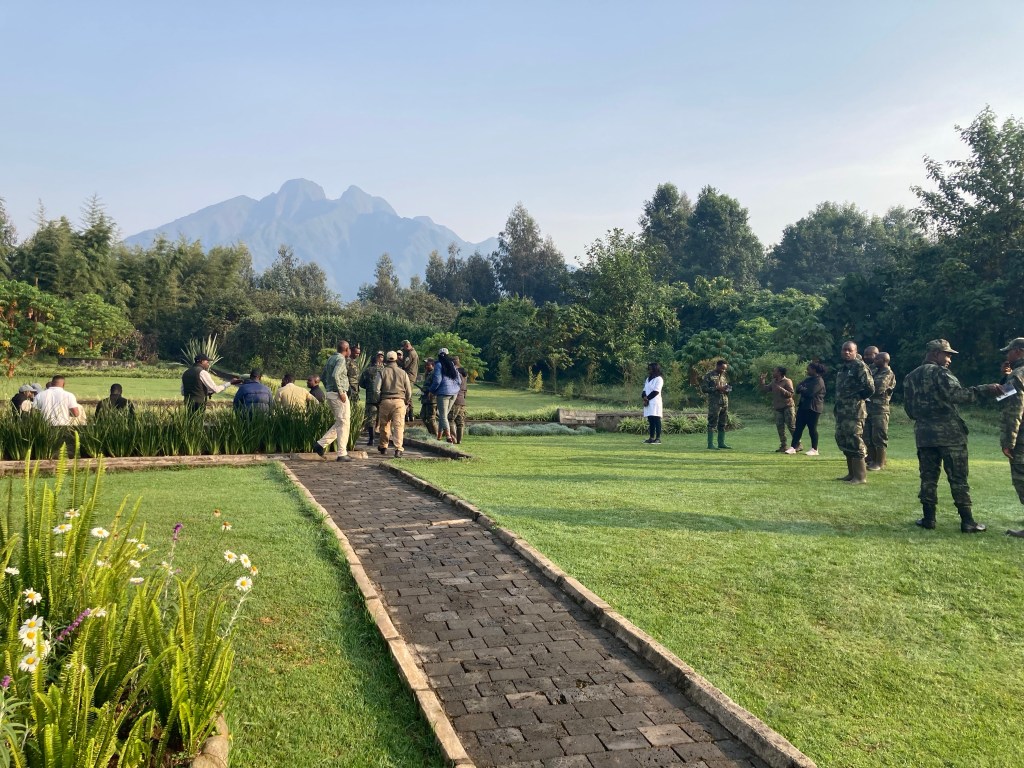 Doreen und ich hatten uns einen Zeitslot am 24. Februar gebucht. Zuvor musste noch ein negativer PCR-Test vorgelegt werden. Eine Prozedur, die irgendwie schon wieder ein wenig in Vergessenheit geraten ist. In Kigali hatte ich auch meine Mühe, die einzig verbleibende Station für PCR-Tests zu finden. Da Gorillas 98 Prozent unserer DNA teilen und somit auch Krankheiten von uns übertragen werden können, ist es nur nachvollziehbar, dass man die sich erholende Population schützen will. Einst unablässig verfolgt, gejagt und vom Aussterben bedroht, sind sie heute wieder auf über 1000 angewachsen. Das ist maßgeblich der Pionierarbeit von Dian Fossey zu verdanken, die den Grundstein für die Arbeit mit den Berggorillas und die Forschung über sie gelegt hat. Diese Arbeit wird heute fortgesetzt vom International Gorilla Conservation Programme. The Ellen DeGeneres Campus of the Dian Fossey Gorilla Fund gedenkt heute der Arbeit Fosseys auf einem fantastischen Gelände, wo insbesondere Kindern auf sehr anschauliche Weise diese wunderbaren Tiere und deren Schutzbedürftigkeit nahe gebracht werden. Was heute vielleicht selbstverständlich ist, war es früher nicht. Bis heute bleibt der gewaltsame Tod von Dian Fossey in ihrer Forschungshütte in den Bergen ungeklärt. Ihre letzte Ruhestätte befindet sich neben den von ihr geliebten Gorillas.