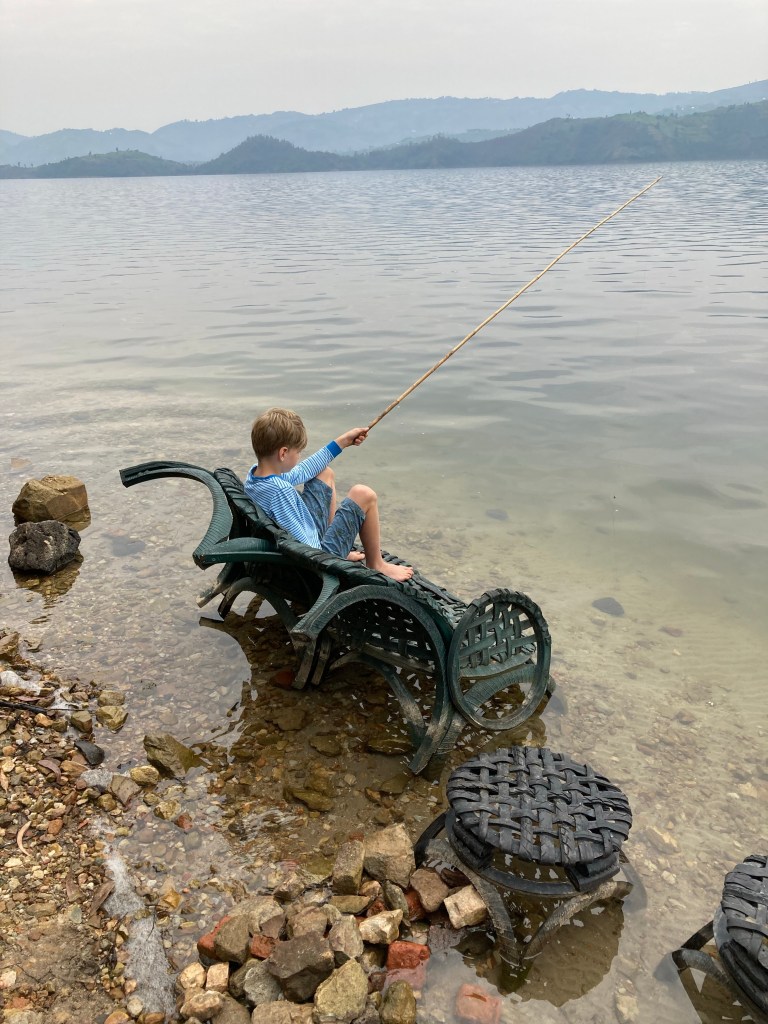Wer hat eigentlich bestimmt, dass eine Stunde 60 Minuten hat? Unsere Stunde hatte gefühlt nur 30 Minuten. Francis hielt sich genau an die Regeln und läutete den Rückweg ein. Irgendwie beneidete ich unseren Schweizer Mitwanderer darum, dies zweimal erlebt zu haben. Es muss diese Erhabenheit sein, die auch Dian Fossey so magisch anzog. Gegen frühen Nachmittag erreichten wir unseren Ausgangspunkt und traten die Rückfahrt an. Anne hatte mit den Kinder den halben Tag im Gorilla-Museum verbracht, wo wir sie dann abholten. Als Dank luden wir sie abends zum Essen ein. Am nächsten Morgen waren wir dann bereit für unser Inselabenteuer.
